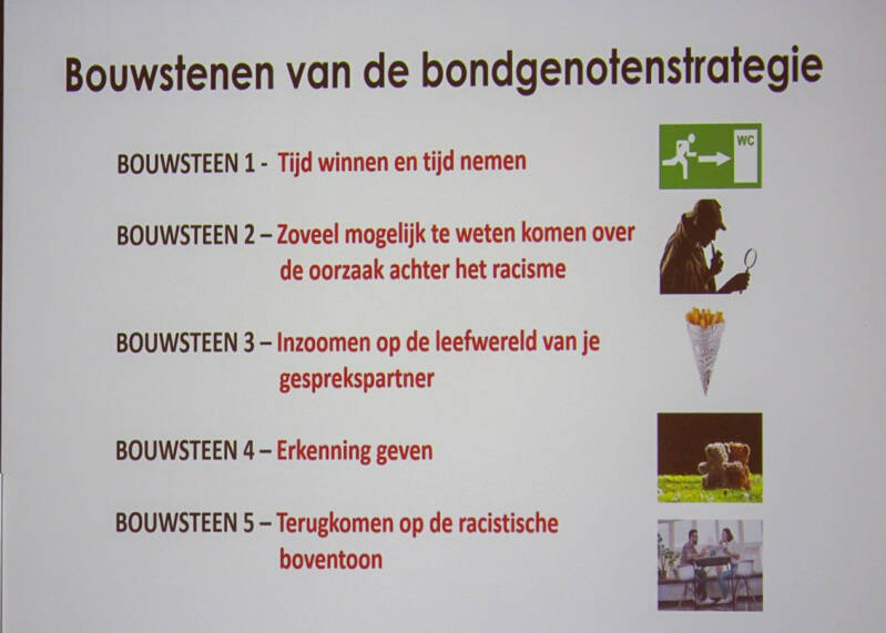 thema-avond "Racisme" in de Koffiebranderij : 36 deelnemers, 5 acteurs, 5 moderatoren en medewerkers-leden van de Mondiale Raad.